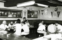 ![]() Año 1950. Tripulación donostiarra de Esperanza, vencedora en La Concha A imagen y semejanza de Amaikak Bat, el C.D. Esperanza mantuvo equipos de balonmano, hockey sobre hierba y patines, pelota y remo. En balonmano a once ganó en 1944 el Campeonato de España. Su trainera conquistó en 1950 la bandera de La Concha, último año de un triunfo donostiarra. El 5 de septiembre de 2000, cincuenta años más tarde, el Club rindió homenaje a dos remeros de aquella trainera: Inocencio Echeverría "Inus" y Antonio Oliden. ![]() Las vitrinas y paredes son muestra de la actividad deportiva del C.D. Esperanza. Año 1978 En nuestra sociedad está permitida la entrada de mujeres todos los días del año a cualquier hora del día, aunque no pueden ser socias. En estos momentos tenemos el cupo de 140 socios completo y con lista de espera para entrar. En la actualidad, otros clubes han tomado el relevo deportivo a las Sociedades Populares, que se ofrecen a los socios sobre todo como lugar de recreo y comida. El C.D. Esperanza saca Tamborrada y participa en la Comparsa de Caldereros. Las mujeres tienen entrada libre, salvo en la cocina. Si crees que la información aquí mostrada no es correcta, que sobran o faltan datos, no dudes en comunicárnoslo haciendo clic aquí. |